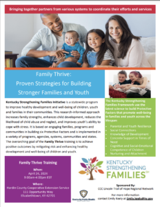 CCC Trail of Hope Regional Network is having a free training April 24th 9am to 4pm at the Hardin County Extension Office (111 Opportunity Way Elizabethtown, KY). A light breakfast and lunch will be served.