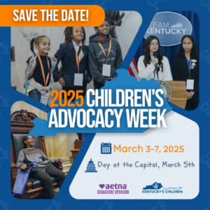 During Children’s Advocacy Week, Kentucky Youth Advocates hosts a series of virtual events with more opportunities to connect with legislators and other advocates. Kentucky kids need advocates more than ever before and we’re counting on YOU to show up for kids in 2025!