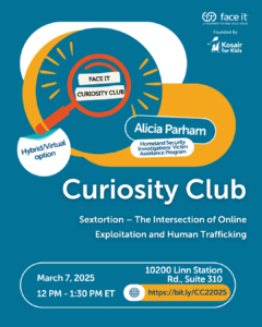 The Kosair for Kids Face It Movement invites you to our next Curiosity Club meeting on Friday, March 7 from 12:00 – 1:30 PM ET. This is a space for learning, discussion, and action on critical issues related to child maltreatment.