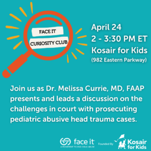 The Kosair for Kids Face It Movement is hosting the next Curiosity Club meeting on Wednesday, April 24th at 2:00pm. The Curiosity Club is open to anyone interested in learning more about issues related to child maltreatment; discussing the latest research, data findings, and ways to apply what’s been learned to your work; and networking with like-minded people.