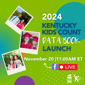 Join Kentucky Youth Advocates on November 20th as we launch the 2024 Kentucky KIDS COUNT Data Book. We invite you to celebrate with us as we share highlights and recommendations from the publication, which for 34 years has allowed readers and leaders to investigate areas that Kentucky counties are making progress and areas that need focused attention for improvement.Because it is seen and used by groups of youth in Eastern Kentucky to Cabinet secretaries in Frankfort, KIDS COUNT data is a catalyst for change. We at KYA use the data as the foundation for policy recommendations, and many others across the state — including educators, government officials, social workers, and more — utilize the book for everything from grant proposals to classroom materials. Your support of KYA helps make it possible for us to collect, analyze, and share this annual “report card for kids,” and we hope you can join us next month as we unveil the latest findings.