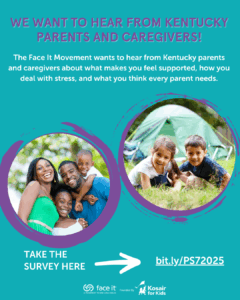 Attention Kentucky parents and caregivers! What makes you feel supported? How do you deal with stress? What do you think every parent needs?The Face It Movement is collecting information on Kentucky parents’ experiences with stress and accessing support. Your responses will help us create a new educational campaign and resources about how to better support parents and caregivers across the state.