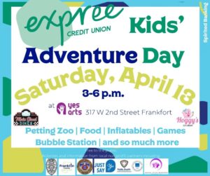 Come hang out with us during our Kids’ Adventure Day at Yes Arts. There will be a petting zoo, inflatables, face painting, ice cream from Hoggy’s, food from Main Street Diner, bubble station, lots of games and more.